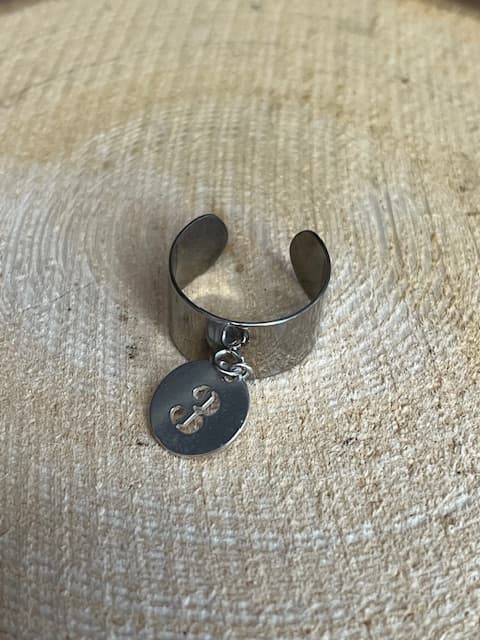 Bague en acier inoxydable avec breloque (1cm) n° 3 – Réglable