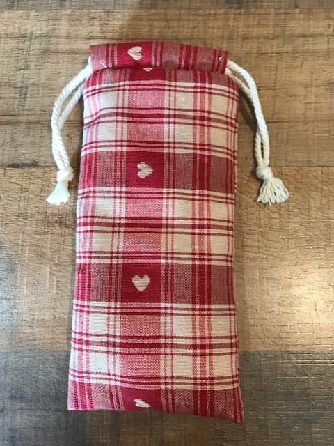Etui à lunettes tissu tissé coeur et intérieur éponge blanche.