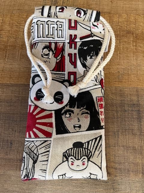 Etui à lunettes toile imprimée Manga . Dimension en cm +/- : 8 x 19