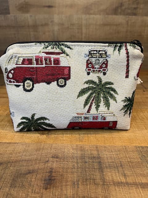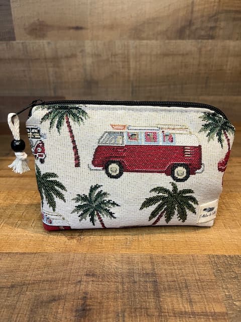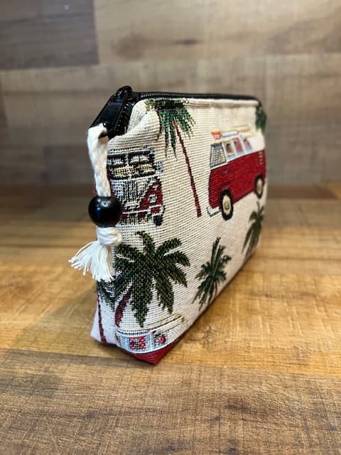 Mini Pochette tissu tissé motif Van. Intérieur tissu coton beige.