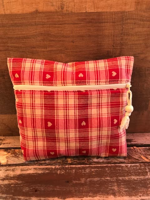 Pochette coton carreaux et coeurs rouges. Doublure idem.