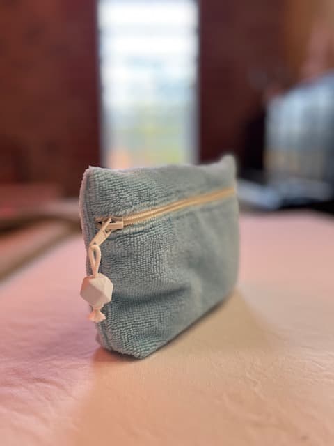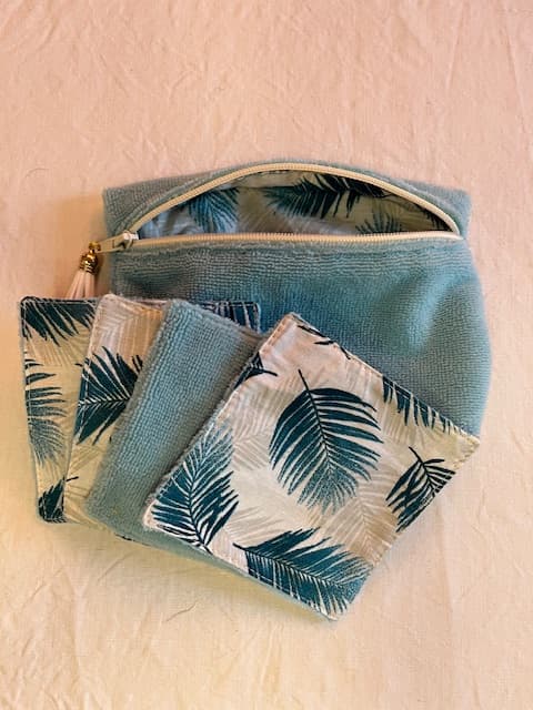 Ensemble pochette avec fond 3 cm et 4 lingettes.Fermeture éclair.