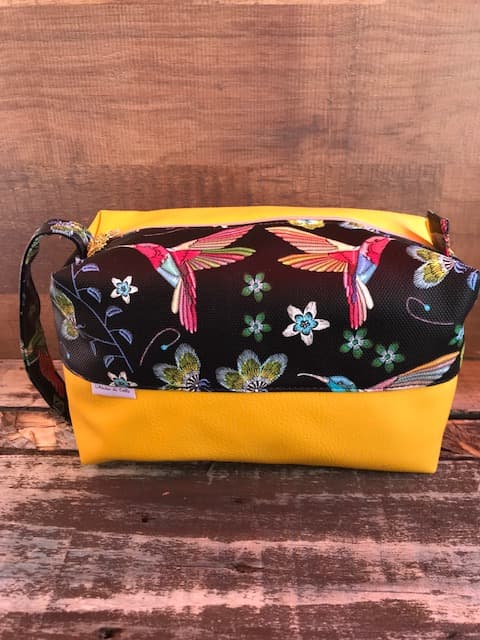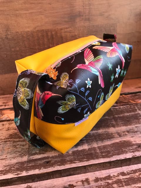 Trousse de toilette Simili cuir jaune et noir à motif . Dimension en cm+/- : LxPxH : 18x10x12